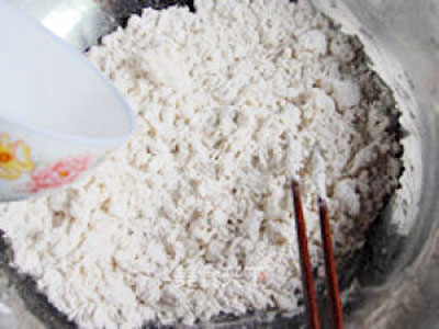 准备一个不锈钢盆放入500克面粉,将酵母倒进30����� �������Ƴ������������ �������Ƴ������������ �������Ƴ������������ �������Ƴ������度左右的温水里,用筷子搅拌融化,将酵母水倒入,����� �������Ƴ������������ �������Ƴ������������ �������Ƴ����������� �������Ƴ�������边倒入边用筷子搅拌成絮状。
