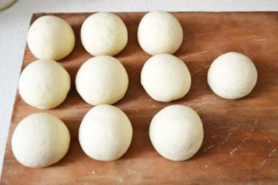 将发酵好的面团取出放在案板上,揉面进行排气,����� �������Ƴ����������� �������Ƴ������������ �������Ƴ������������ �������Ƴ�������揉至原来面团的大小。把面团揉成长条状,用����� �������Ƴ������������ �������Ƴ������������ �������Ƴ������������ �������Ƴ�������刀切成等份。将分好的等份面团揉成馒头形状。